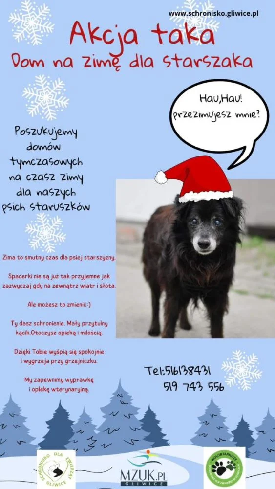 Więcej informacji na temat akcji i działalności gliwickiego schroniska dla zwierząt można znaleźć na stronie internetowej www.schronisko.gliwice.pl. Osoby zainteresowane przezimowaniem starszaka mogą kontaktować się ze schroniskiem pod numerami telefonu: 516-13-84-31 oraz 519-74-35-56. (mf)