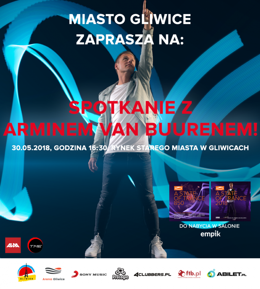 Uwaga wszyscy fani Armina Van Buurena! W środę, 30 maja, przed wielką imprezą A State Of Trance 850, główna gwiazda imprezy pojawi się o godzinie 16.30 na Rynku, gdzie będzie podpisywać swoją najnowszą kompilację “A State Of Trance 2018”!