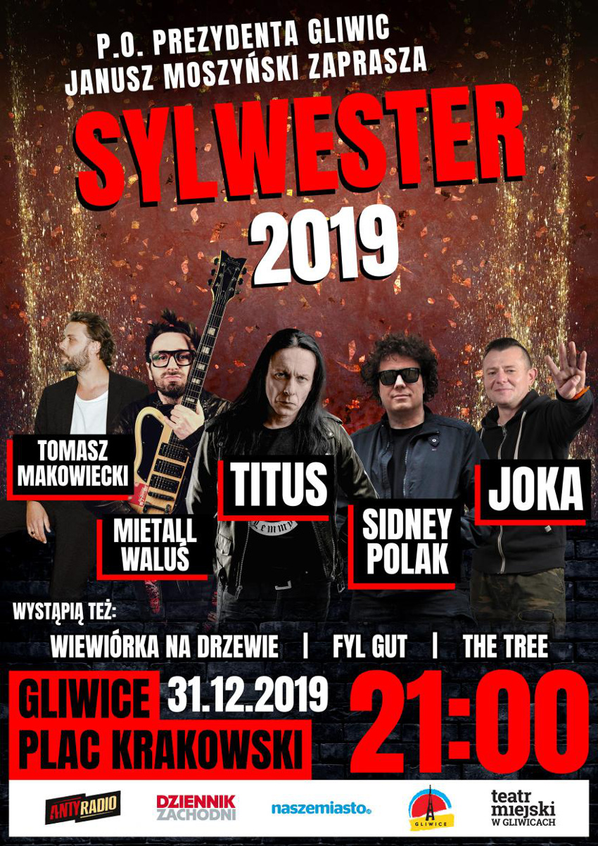 Ostrą rockową jazdę fanom mocnego brzmienia zapewni Titus, wokalista i gitarzysta kultowego zespołu Acid Drinkers. Tegoroczny sylwester nie zawiedzie także miłośników reggae, którzy będą bawić się na koncercie Sidneya Polaka. Scenę hip-hopową będzie reprezentował Joka, śląski raper znany z formacji Kaliber 44. Będzie moc!