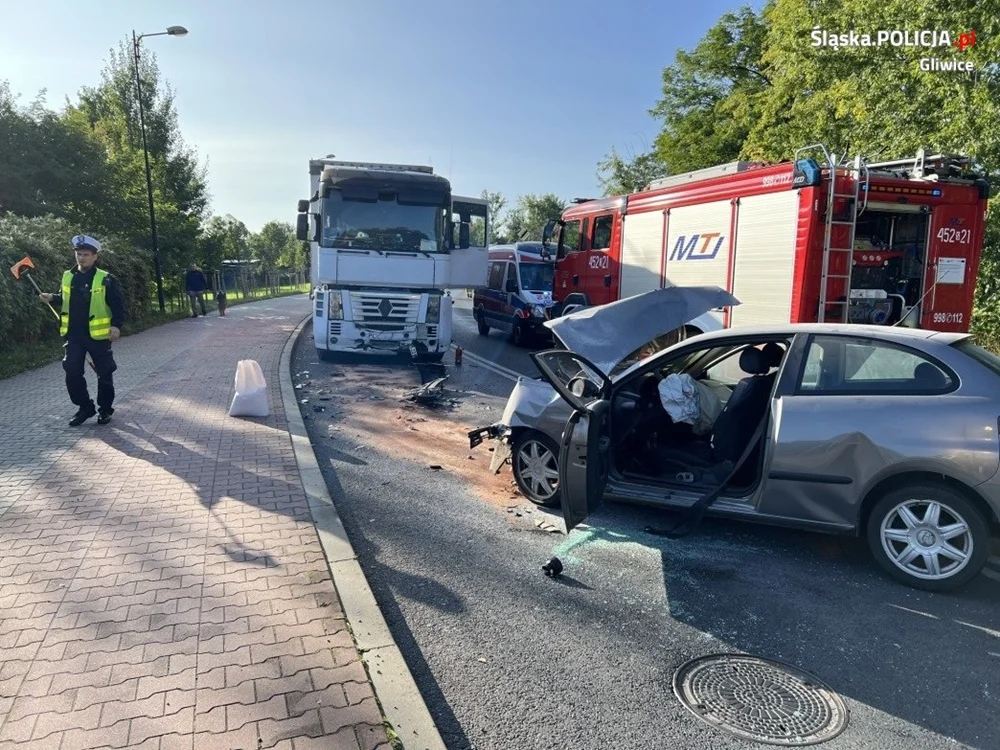 Czołowe zderzenie osobówki z tirem w Gliwicach. Kierowca osobówki był nieprzytomny!