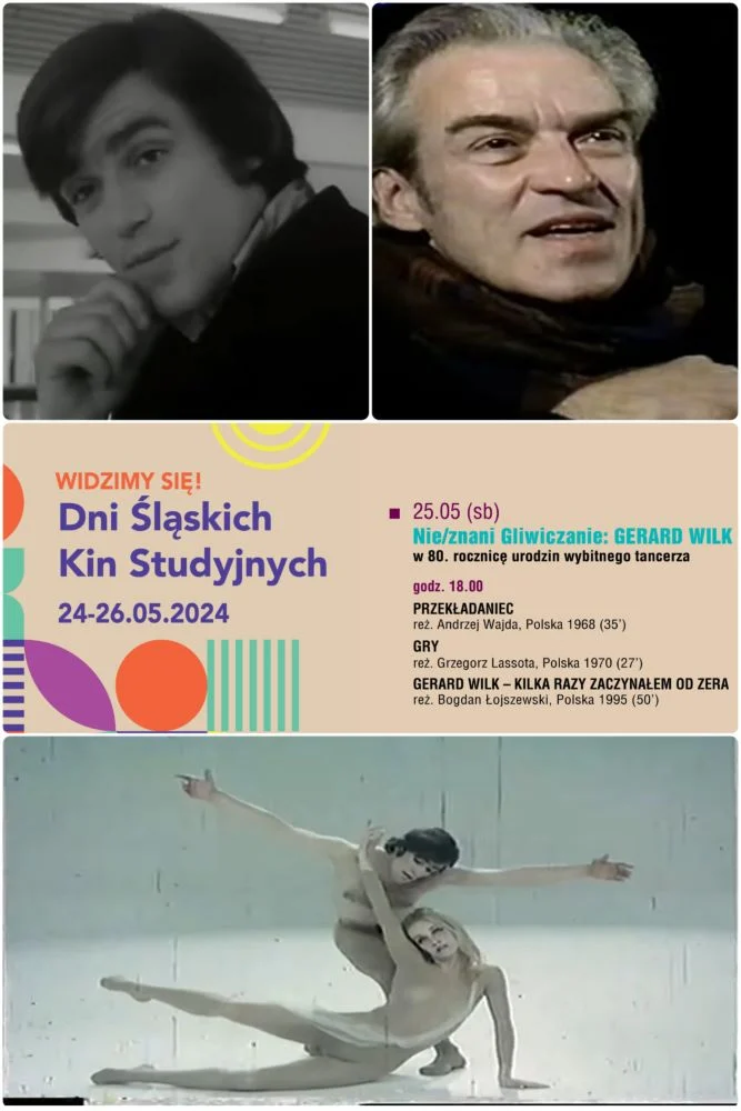 W ramach Dni Śląskich Kin Studyjnych, 25 maja gliwicki AMOK zaprasza do Małej Sali na pokaz filmów związanych z wybitnym tancerzem baletowym Gerardem Wilkiem – zmarłym w 1995 r. w Paryżu gliwiczaninem, który w tym roku obchodziłby 80. urodziny. Po godz. 18.00 wyświetlone zostaną krótkie metraże: komedia fantastycznonaukowa „Przekładaniec” w reżyserii Andrzeja Wajdy na podstawie scenariusza Stanisława Lema oraz film baletowy „Gry” Grzegorza Lasoty ze scenariuszem Xymeny Zaniewskiej i Mariusza Chwedczuka. Całość zwieńczy biograficzny dokument Bogdana Łojszewskiego „Gerard Wilk – kilka razy zaczynałem od zera”.