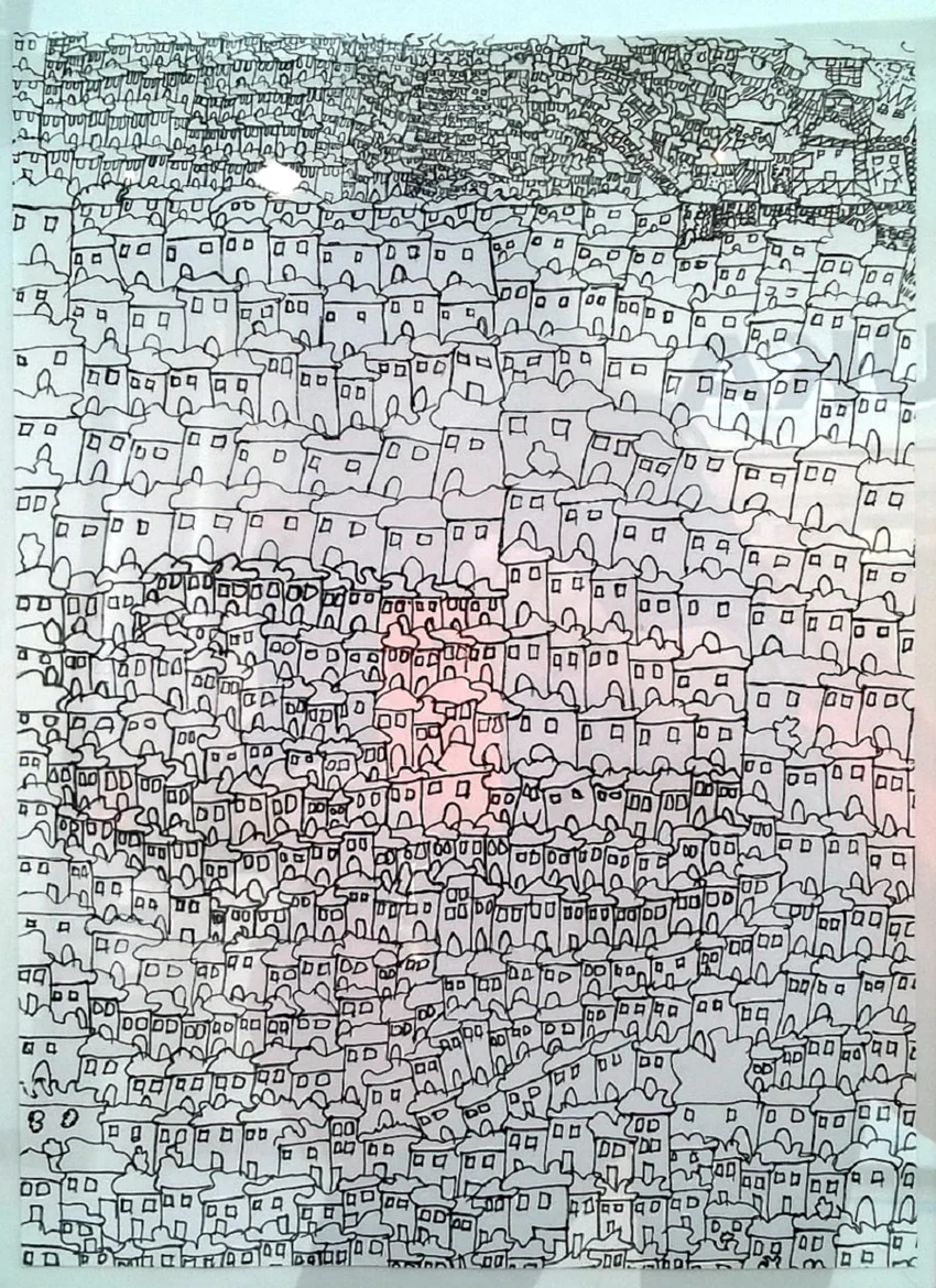 Konkurs był przeznaczony dla twórców indywidualnych, a także uczniów szkół specjalnych, uczestników warsztatów terapii zajęciowej, mieszkańców domów pomocy społecznej oraz innych placówek zrzeszających osoby nie w pełni sprawne. Niektórez wystawianych obrazów, rysunków i grafik prezentowały się tak świetnie, świeżo i odkrywczo jak dzieła profesjonalnych mistrzów! Zwłaszcza jedna grafika była, według mnie, znakomita: dzieło Adama Alwina przedstawiające miasto (fotografia u góry). Autor w syntetyczny, prosty i przemyślany sposób uwiecznił nasze miejskie środowisko. I to był ten jeden, jedyny obraz, który na mnie czekał.