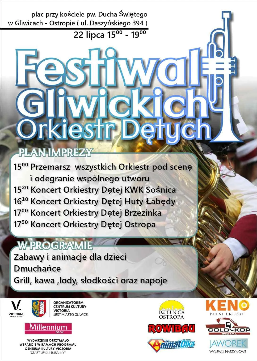 Festiwal Gliwickich Orkiestr Dętych to jeden z sześciu zwycięskich projektów, które otrzymały wsparcie w ramach tegorocznej edycji „Start-upu kulturalnego”– programu Centrum Kultury Victoria skierowanego do twórców gliwickiej kultury – organizacji, artystów, animatorów, organizatorów imprez czy warsztatów (profesjonalistów i amatorów) z pomysłem na organizację oryginalnego wydarzenia w kolejnym, interesującym miejscu na mapie Gliwic.