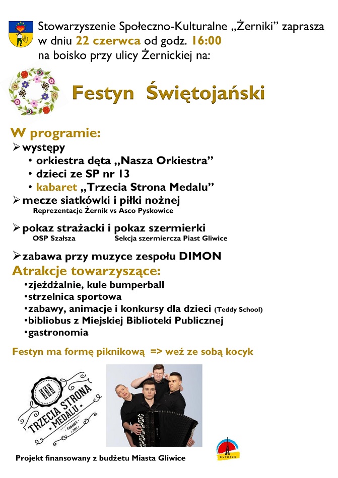 Stowarzyszenie Społeczno-Kulturalne “Żerniki” zaprasza na Festyn Świętojański. W programie zaplanowano sporo atrakcji dla małych i dużych.