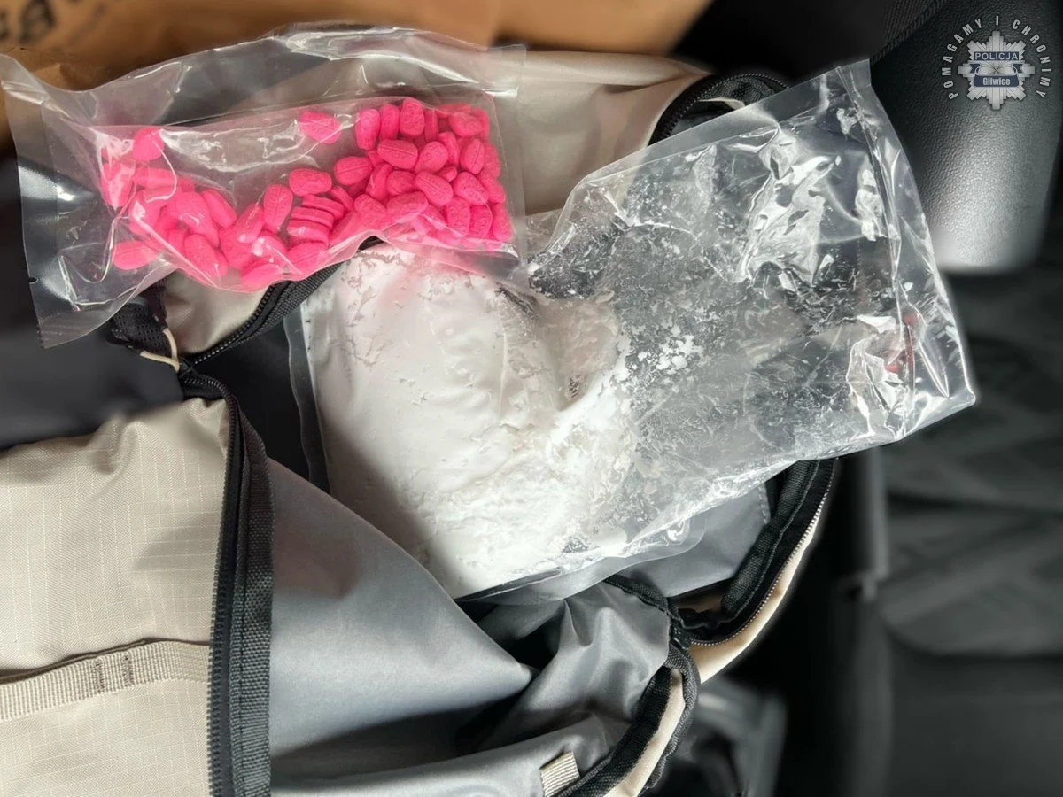 W wyniku przeszukania samochodu oraz mieszkania pasażera (29-letniego mieszkańca Gliwic), funkcjonariusze zabezpieczyli łącznie ponad 23 kilogramy środków odurzających. Wśród zabezpieczonych substancji znajdowały się: amfetamina, kokaina, metamfetamina, MDMA, marihuana, tabletki ekstazy oraz elektroniczne inhalatory zawierające THC.