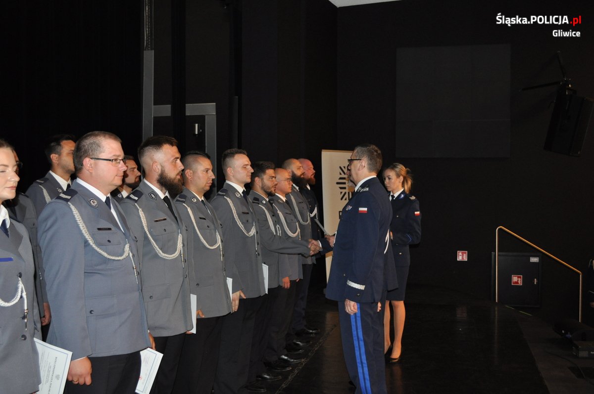 W trakcie uroczystości akty nominacyjne na wyższe stopnie policyjne otrzymało 174 funkcjonariuszy. Awanse wręczali pierwszy policjant ziemi śląskiej, Komendant Wojewódzki Policji w Katowicach, nadinspektor Roman Rabsztyn oraz Komendant Miejski Policji w Gliwicach, młodszy inspektor Dariusz Fuks.