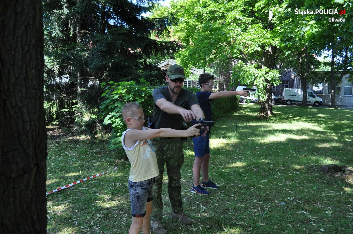 Na pikniku nie zabrakło również atrakcji dla dzieci. Jedną z nich był udział w drugiej edycji Rodzinnego Toru Przeszkód, malowanie farbami na przygotowanej specjalnie ścianie oraz rodzinne przeciągnie liny. Jednak największym zainteresowaniem cieszyła się przenośna strzelnica miłośnika surwiwalu st. asp. Jarosława Stachel, który prowadził wśród młodszych i starszych uczestników pikniku trening strzelecki z repliki broni na śrut.