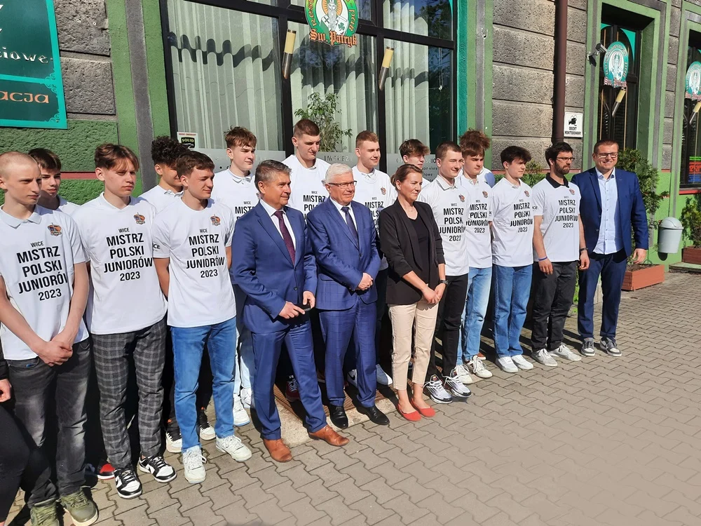 Znakomitych wyników na parkieciepogratulowali młodym sportowcom prezydent Gliwic Adam Neumann oraz Marek Pszonak, przewodniczący Rady Miasta Gliwice, którzy spotkali się z zawodnikami 16 maja.