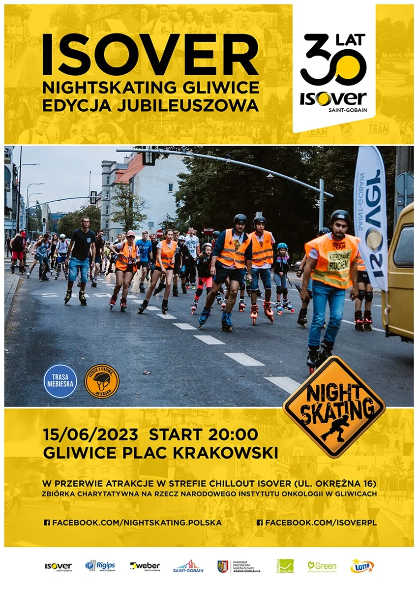 Imprezę rekreacyjną pod nazwą „ISOVER Nightskating Gliwice” uświetniającą obchody 30-lecia marki ISOVER w Polsce, swoim patronatem objął Prezydent Miasta Gliwice. Nightskating to inicjatywa, której celem jest rekreacja i wychowanie przez sport oraz integracja różnych grup społecznych i wiekowych, a przede wszystkim dobra zabawa.