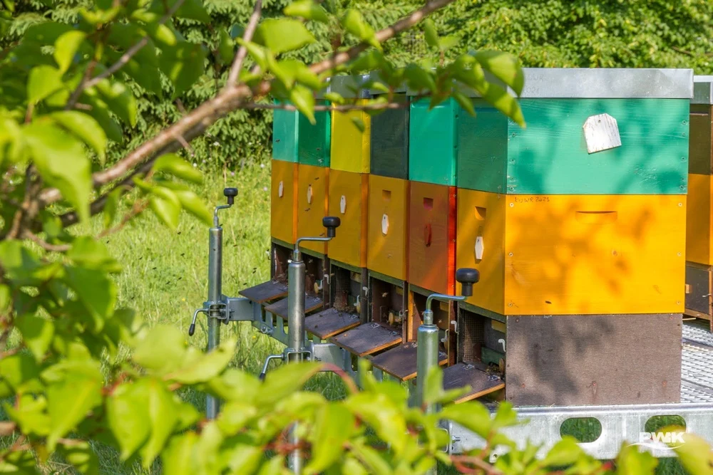 Na terenach zarządzanych przez PWiK zadomowiło się już 46 pszczelich rodzin. Mieszkają w kolorowych ulach, bzyczą, uwijają się jak w ukropie, przysiadają na pobliskich kwiatach, zapylają, zbierają pyłek i ciężko pracują przy produkcji miodu.