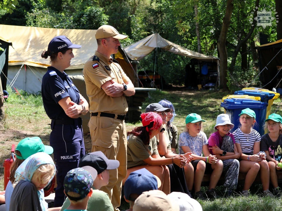 W ramach ogólnopolskiej kampanii „Kręci mnie bezpieczeństwo w lecie”, policjanci z gliwickiego garnizonu wraz z funkcjonariuszami Państwowej Straży Pożarnej w Gliwicach przeprowadzili pogadankę z uczestnikami obozu harcerskiego zorganizowanego przez Związek Harcerstwa Polskiego Chorągiew Śląska Hufiec Chorzów. Letni wypoczynek odbywa się w miejscowości Niewiesze przy ul. Plażowej 1, na terenie powiatu gliwickiego.