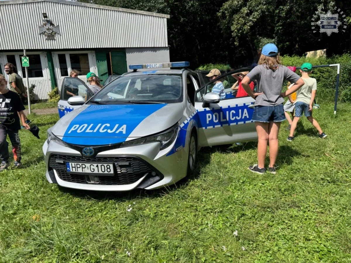 Podczas wizyty, która miała miejsce 5 sierpnia, udział wzięła st. sierż. Milena Szymańska z dzielnicowymi z Komisariatu Policji w Pyskowicach oraz funkcjonariuszami Państwowej Straży Pożarnej w Gliwicach. Przeprowadzono pogadankę profilaktyczną skierowaną do najmłodszych. Policjantka przypomniała o zasadach bezpieczeństwa nad wodą, w lesie, a także o bezpiecznym korzystaniu z Internetu. Zwrócono uwagę na konieczność słuchania opiekunów, zgłaszania niepokojących sytuacji oraz świadomość możliwości zwrócenia się do dorosłych z każdym problemem. Podczas spotkania omówiono również zasady korzystania z numerów alarmowych – podkreślono, kiedy należy dzwonić po pomoc i jakie mogą być konsekwencje wykonywania fałszywych połączeń.