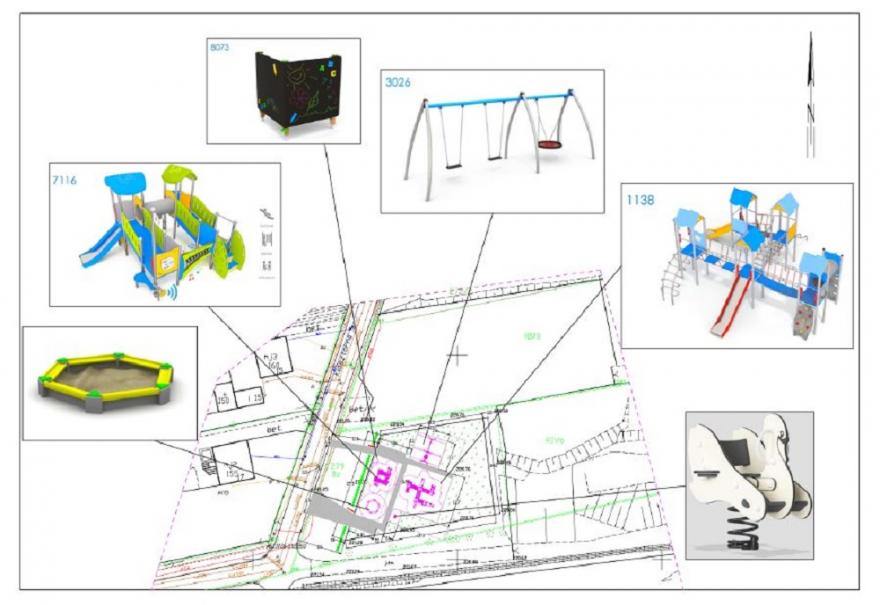W ramach GBO na bezpiecznej nawierzchni z gumowych płyt zostaną zamontowane dwa urządzenia wielofunkcyjne ze zjeżdżalniami, drabinkami, rurami, mostkami, ściankami do wspinaczki, pajęczymi sieciami, tubami przenoszącymi dźwięk oraz kreatywnymi urządzeniami rozwijającymi wyobraźnię i psychomotorykę najmłodszych. Na placu zabaw staną też huśtawki, w tym typu bocianie gniazdo, piaskownica, tablica do rysowania i kiwak w kształcie łabędzia. Teren zostanie wyposażony w ławki z oparciem, stalowe kosze na śmieci i tablice informacyjne oraz chodniki. Będzie ogrodzony i zabezpieczony samoczynnie zamykającą się bramką.