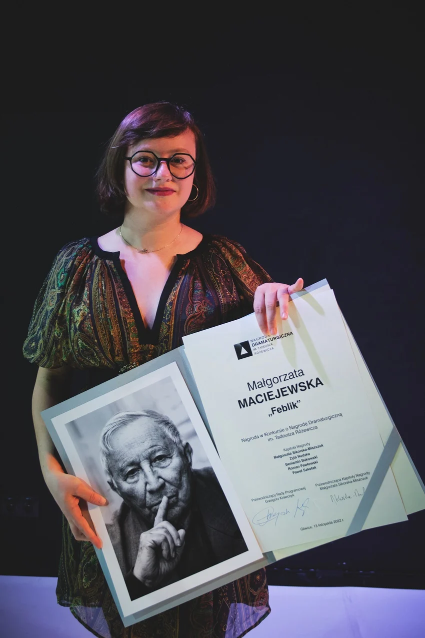 13 listopada w Teatrze Miejskim w Gliwicach ogłoszono werdykt Kapituły pierwszej edycji Konkursu o Nagrodę Dramaturgiczną im. Tadeusza Różewicza. Nagrodę główną i 50 000 zł otrzymała Małgorzata Maciejewska za sztukę „Feblik”.