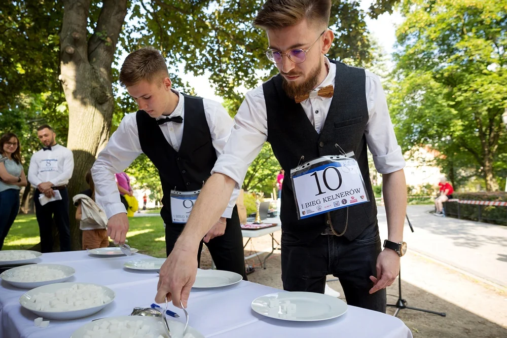 Ubrani w kelnerskie stroje próbowali m.in. pokonać dystans około 0,5 km z wypełnioną po brzegi tacą – tak, by nie upuścić żadnego z umieszczonych na niej naczyń.