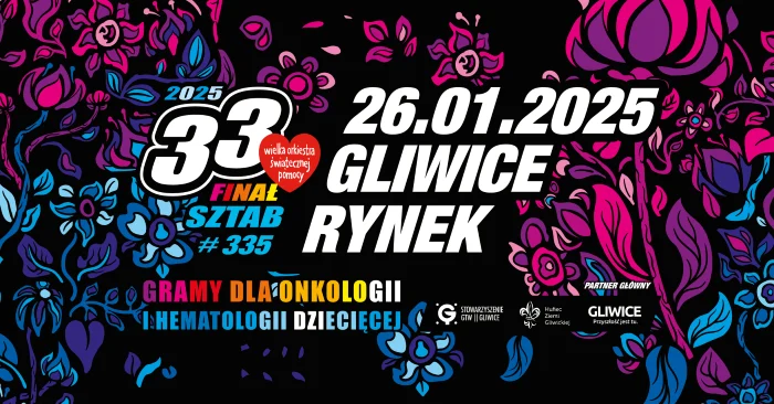 Tylko kilka dni dzieli nas od 33. już Finału Wielkiej Orkiestry Świątecznej Pomocy. Gliwice jak zwykle włączają się w tę akcję i zapraszają w ostatnią niedzielę stycznia na Rynek, gdzie odbędzie się tradycyjny miejski finał, organizowany przez sztab #335 Stowarzyszenia GTW we współpracy z Hufcem ZHP Ziemi Gliwickiej. Startujemy o godz. 12.00!