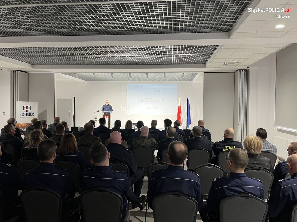 W czwartek, 15 lutego, w Stacji Kultury w Pyskowicach w odrestaurowanym i zaadaptowanym do nowych zadań starym dworcu kolejowym odbyła się roczna odprawa z udziałem kierownictwa gliwickiej Policji. Jednak najważniejsi byli lokalni samorządowcy – starosta, prezydenci, burmistrzowie, wójtowie – jako przedstawiciele społeczności lokalnych. W odprawie wzięli udział szefowie gliwickich prokuratur, żołnierze, przedstawiciele straży i podmiotów odpowiedzialnych za bezpieczeństwo Podsumowano i oceniono pracę gliwickich policjantów w roku 2023.