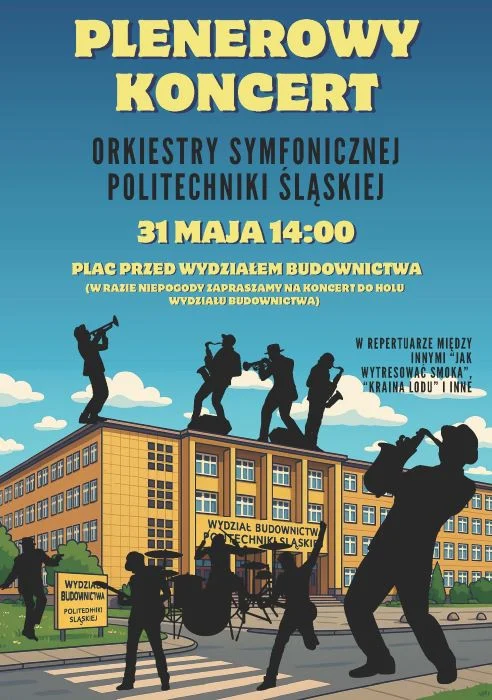 Koncert odbędzie się niezależnie od warunków atmosferycznych. W razie niepogody – w holu Wydziału Budownictwa. Wstęp wolny.