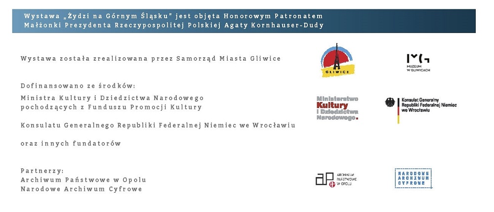 Wystawa Żydzi na Górnym Śląsku jest objęta Honorowym Patronatem Małżonki Prezydenta Rzeczypospolitej Polskiej Agaty Kornhauser-Dudy.