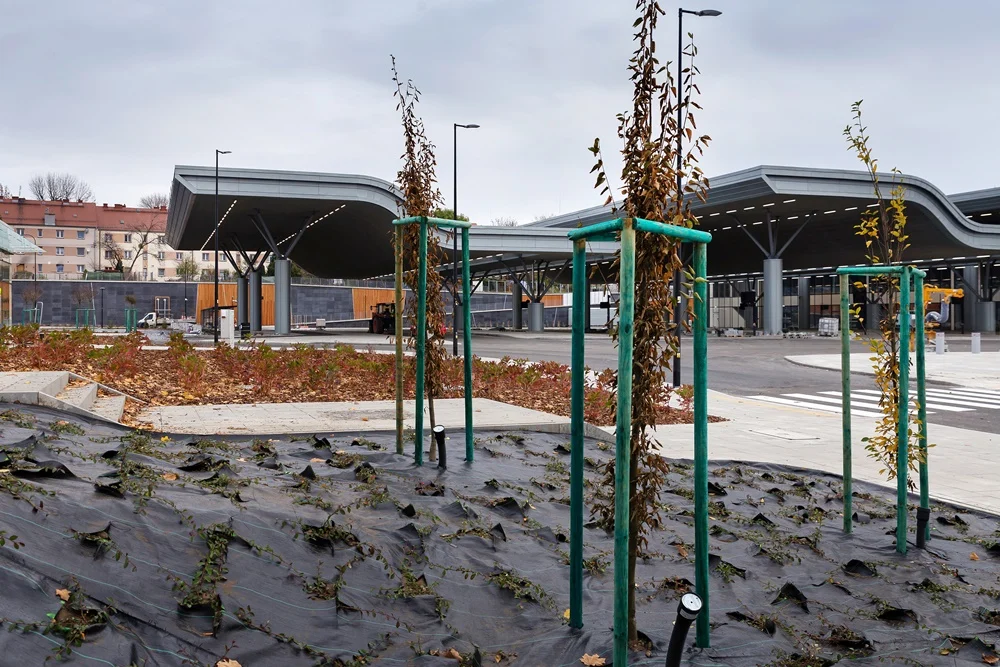 – Wszystkie zastosowane gatunki roślin są odporne na warunki miejskie. Co równie ważne, gwarantują dużą zmienność sezonową w postaci pięknego kwitnienia i przebarwienia jesiennego, a w przypadku gatunków zimozielonych także efekt całoroczny – podkreśla Kamila Sichma, inspektor nadzoru terenu zieleni odpowiadająca z ramienia wykonawcy za całokształt zielonych prac naobszarze Centrum Przesiadkowego.