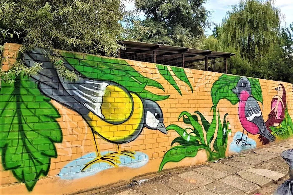 Ogromna, kolorowa papuga ozdobiła ścianę przejściaprzy ul. Czajki 3. Rozsiadła się wśród zieleni, z gałęzi zerka na nią ciekawski tukan. To nowa atrakcja Sikornika – barwny mural, który na zlecenie Rady Dzielnicy Sikornik wykonały Animacje na Ścianie. Prace trwały pięć dni, efekt jest wspaniały.