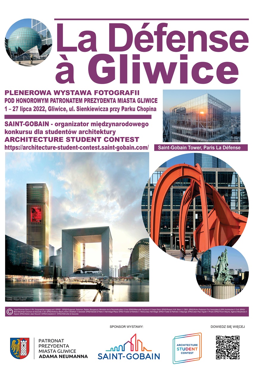To dzień szczególny, w którym organizator zaprasza mieszkańców Gliwic do obejrzenia plenerowej wystawy fotografii poświęconej architekturze współczesnej i dziełom sztuki podparyskiej La Défense.