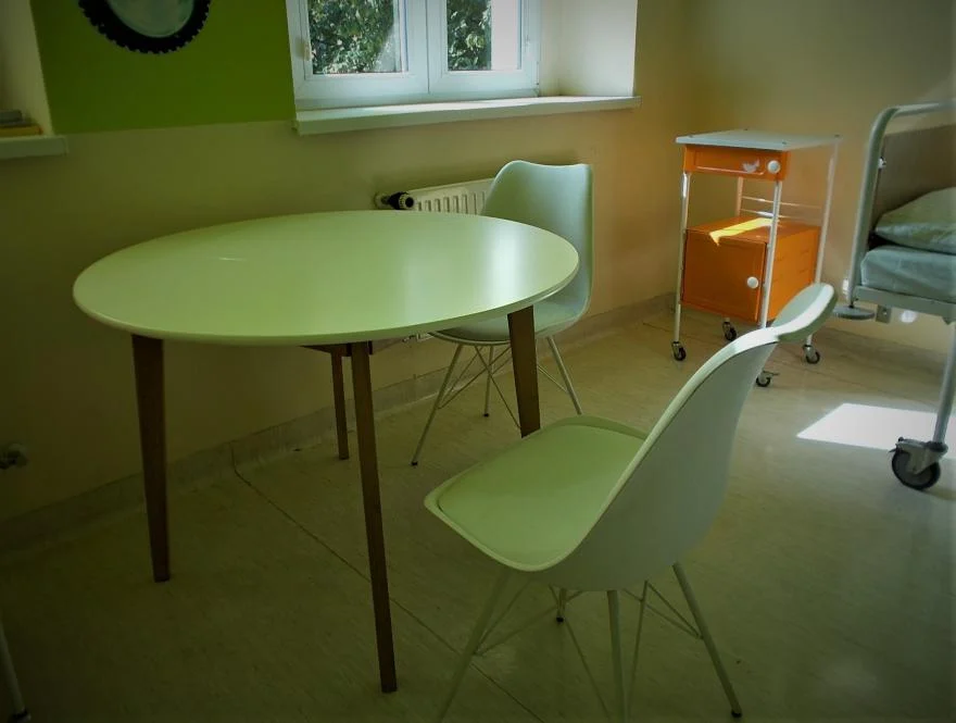 Do dyspozycji małych pacjentów i ich rodziców są nowoczesne, funkcjonalne stoły oraz krzesła, kilkanaście kompletów kolorowej pościeli oraz przytulne koce.