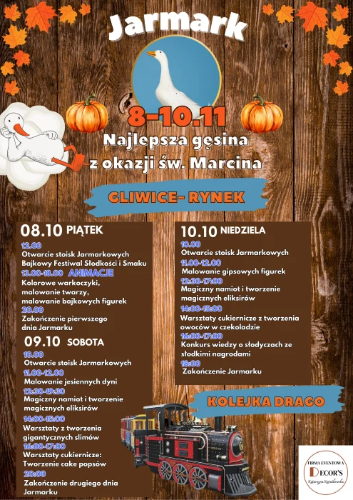 Zbliżający się jarmark odbędzie się z okazji Dnia Świętego Marcina, obchodzonego w wielu krajach 11 listopada. Przez trzy dni na odwiedzających gliwicki Rynek czekać będzie masa rozmaitych atrakcji i doskonałej zabawy. Na początek – coś dla miłośników łakoci, czyli Bajkowy Festiwal Słodkości i Smaku!