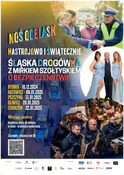 Mundurowi poruszą w ich trakcie kwestie związane z bezpieczeństwem osób, które ukończyły 60 lat, ponieważ stanowią one aż 36% ofiar zdarzeń drogowych i często padają ofiarą oszustów. Będzie pouczająco, ale także nastrojowo i świątecznie – z Mirkiem Szołtyskiem, któremu wtórować będzie Orkiestra Komendy Wojewódzkiej Policji w Katowicach.