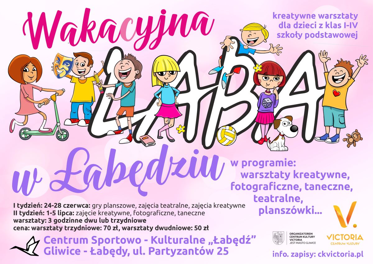 Więcej informacji na temat „Wakacyjnej LABY” oraz formularze zapisów można znaleźć na stronie internetowej  na www.ckvictoria.pl.