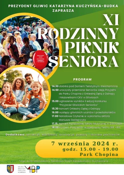 Barwny pochód, koncerty, występy artystyczne, liczne warsztaty, pokazy i zabawy – to tylko niektóre atrakcje czekające na uczestników XI Rodzinnego Pikniku Seniora, który już w sobotę, 7 września, zagości w parku Chopina. I choć impreza skierowana jest w szczególności do seniorów, to nie zabraknie na niej aktywności dla całych rodzin.