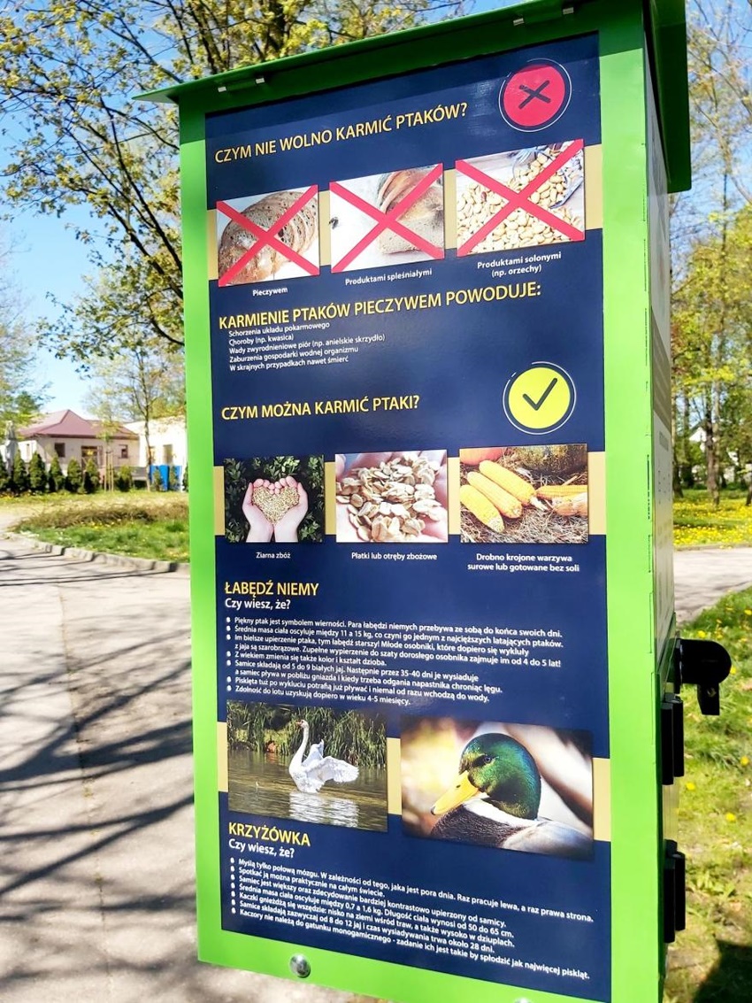 – Na urządzeniach znajduje się instrukcja obsługi. Wystarczy 2 zł, żeby z Ptasiego Bufetu pozyskać zdrową karmę dla ptaków – pełną różnorodnych i odżywczych ziaren. Ważne, żeby karmy nie wsypywać bezpośrednio do wody, a pozostawić ją na brzegu. Ptasie Bufety uczą, żeby nie dokarmiać ptaków – jak to się dzieje najczęściej – pieczywem, które może im zaszkodzić – mówi Marzena Sosnowska, rzecznik prasowy Miejskiego Zarządu Usług Komunalnych, jednostki miejskiej, która zamontowała Ptasie Bufety w porozumieniu z firmą z Ostródy, która wyszła z taką inicjatywą.