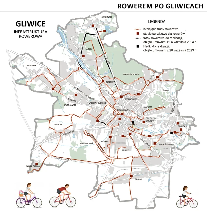 To kolejny krok w celuzapewnienia mieszkańcom jak najbardziej komfortowych warunków do przemieszczania się po Gliwicach. Wykonawcą prac budowlanych, związanych z realizacją czterech tras rowerowych i modernizacją dwóch kładek dla jednośladów, będzie konsorcjum firm: Przedsiębiorstwo Remontów Ulic iMostów w Gliwicach oraz EUROVIA POLSKA S.A. Termin realizacji zadania wynosi maksymalnie 26 miesięcy od dnia zawarcia umowy.