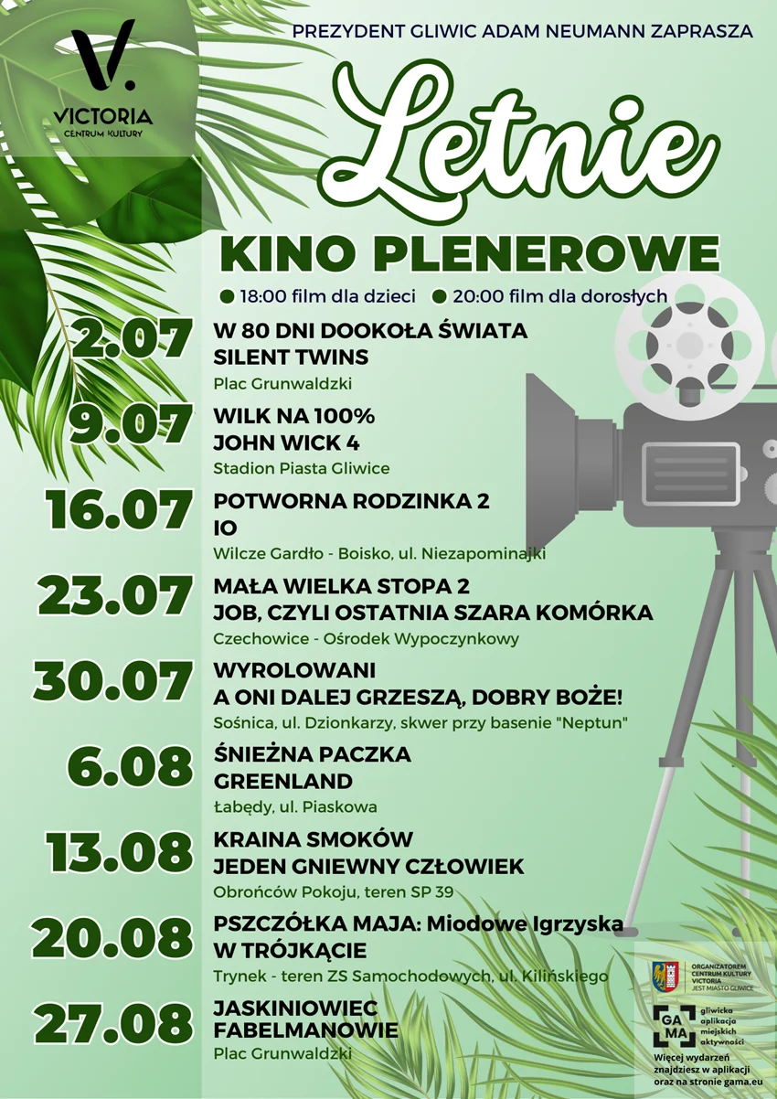 Harmonogram seansów Letniego Kina Plenerowego w Gliwicach: