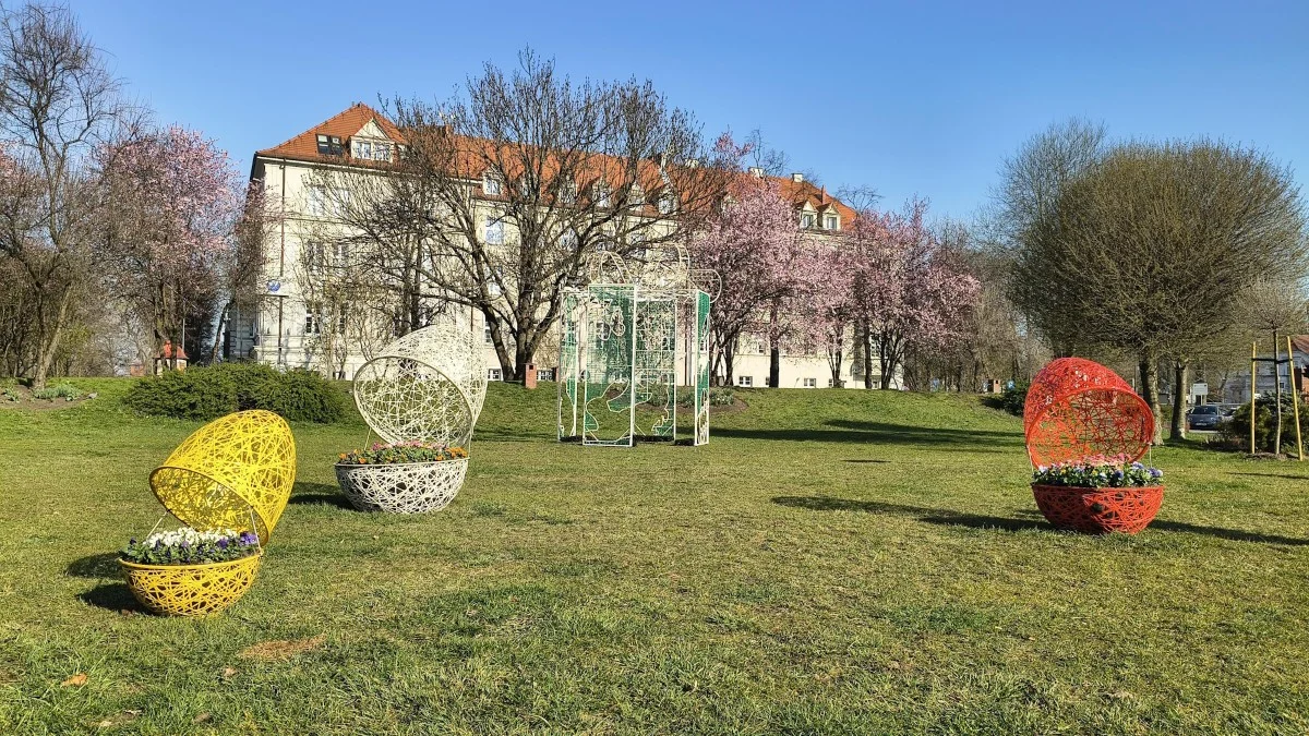 Skwer Doncaster za Urzędem Miejskim w Gliwicach zyskał nowy, świąteczny akcent. Pojawiły się tam kwietniki w kształcie kolorowych pisanek, które wprowadzają wiosenny klimat do centrum miasta.