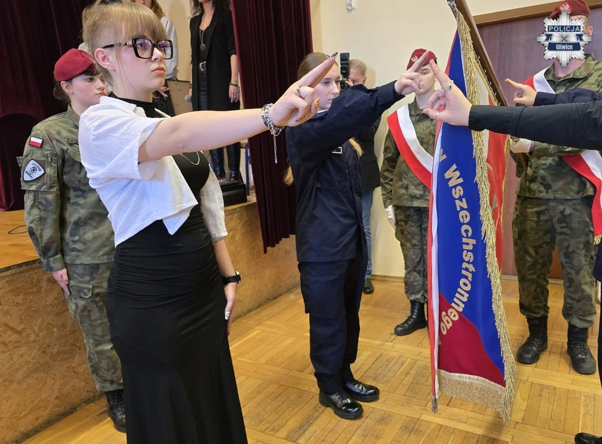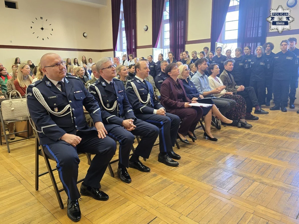 W wydarzeniu uczestniczyli przedstawiciele gliwickiej policji na czele z Zastępcą Komendanta Miejskiego Policji w Gliwicach mł. insp. Januszem Górką. Obecni na wydarzeniu przekazali młodzieży gratulacje oraz życzenia wytrwałości, sukcesów i satysfakcji z obranego kierunku kształcenia. Podkreślili także, że zainteresowanie służbą i wartościami obywatelskimi to najlepsza inwestycja w przyszłość – zarówno zawodową, jak i osobistą.