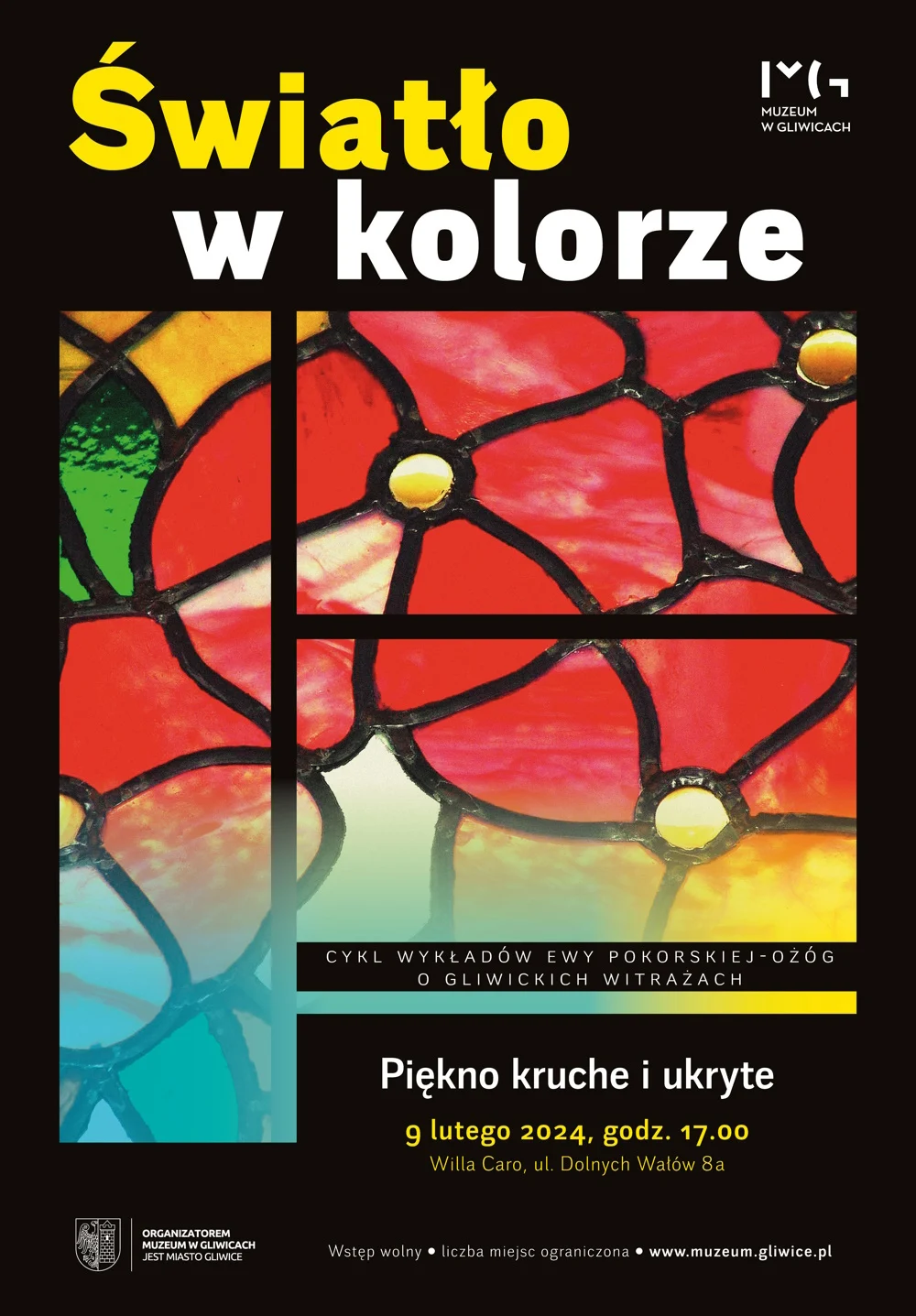 Opowieść o gliwickich witrażach uzupełniona zostanie historią sztuki witrażowniczej. Pierwszy wykład – „Piękno kruche i ukryte” – odbędzie się 9 lutego i rozpocznie się o godz. 17.00 w Willi Caro (ul. Dolnych Wałów 8a). Wstęp wolny, liczba miejsc ograniczona.