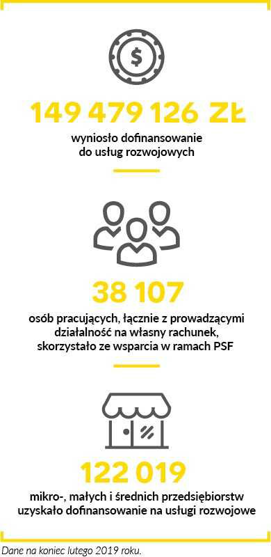 Dofinansowanie w ramach Regionalnego Programu Operacyjnego Województwa Śląskiego umożliwia finansowanie usług rozwojowych dla mikro–, małych i średnich przedsiębiorstw oraz osób samozatrudnionych z funduszy unijnych. Wsparcie wynosi od 50 do 80 proc. kosztów usługi. Usługi rozwojowe to m.in.: szkolenia, mentoring i coaching, doradztwo, e–learning.