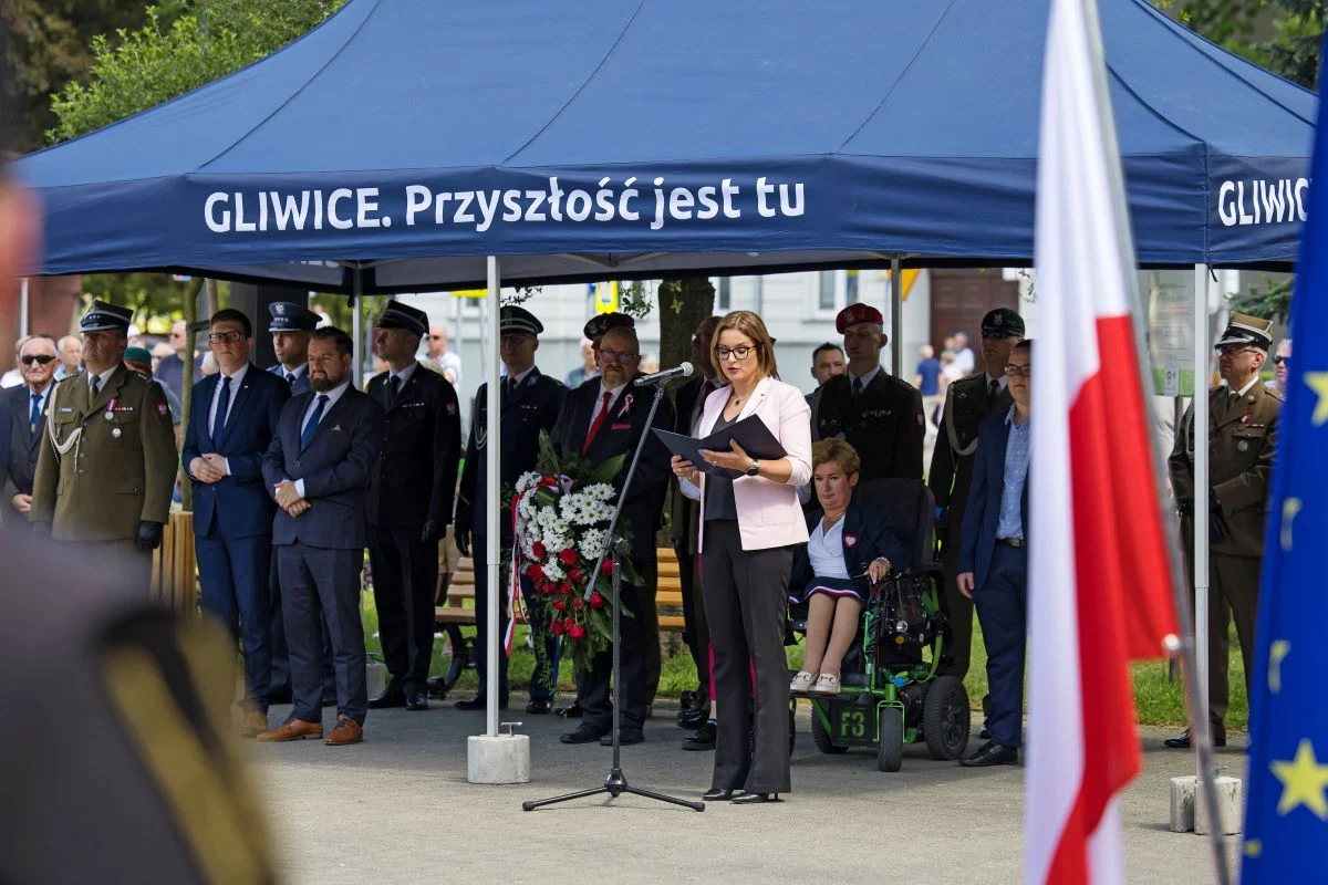 Po nabożeństwie uczestnicy obchodów, przy akompaniamencie Orkiestry Dętej KWK „Sośnica”, przemaszerowali wspólnie na plac Adama Mickiewicza, gdzie odbyły się oficjalne uroczystości z udziałem m.in. przedstawicieli samorządu, lokalnych służb, żołnierzy, harcerzy, mażoretek oraz mieszkańców. Władze Gliwic reprezentowała sekretarz miasta, Marta Tartanus-Oryszczak.
