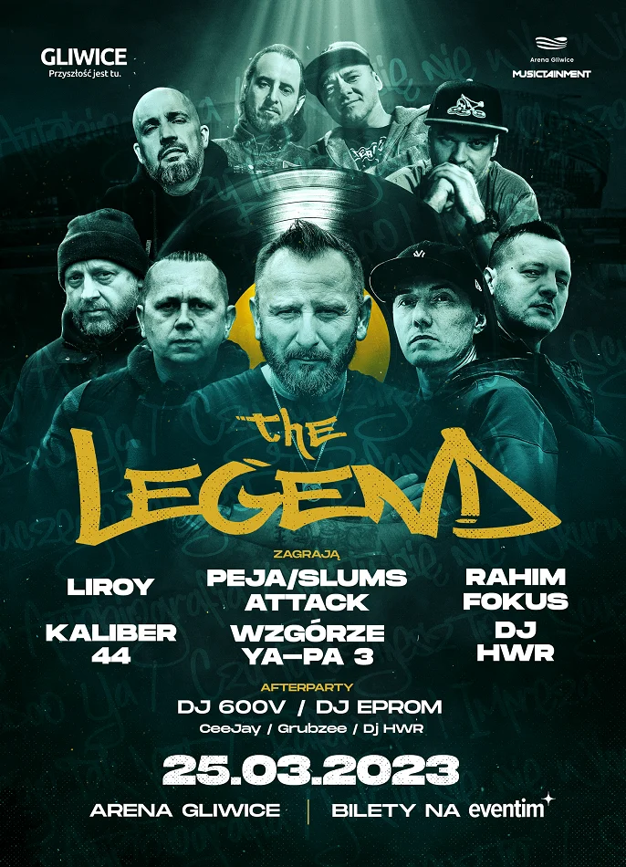 Po wielu latach ponownie będziemy mogli usłyszeć na żywo kultowego Scyzoryka wwykonaniu Liroya i Wzgórza YA-PA 3! Będzie to z niesamowity moment festiwalu, który pozwoli cofnąć się do wielu wspomnień. Gliwice tego dnia będą bardzo głośne, a koncerty z The Legend Festiwal będziemy jeszcze długo wspominać. W końcu festiwal będzie świadkiem wielu historycznych wydarzeń, jak pierwszy wspólny występ wspomnianego Liroy`a z Peją. Tak, to w Gliwicach nastąpi ten spektakularny moment występu, który zasłynął najgłośniejszym diss`em lat 90-tych…