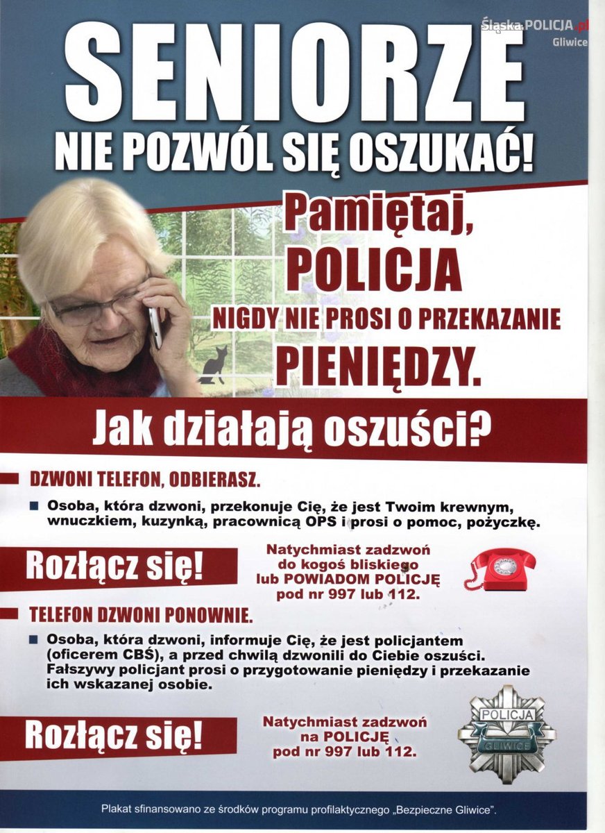 Tym razem seniorzy nie dali się oszukać. Kolejne próby oszustów w Gliwicach!