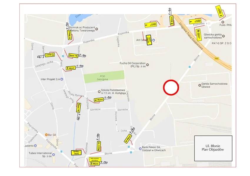 W związku z pracami przy przejeździe kolejowym przy ul. Błonie, fragment ulicy – od kopalni do ul. Kujawskiej – został zamknięty.