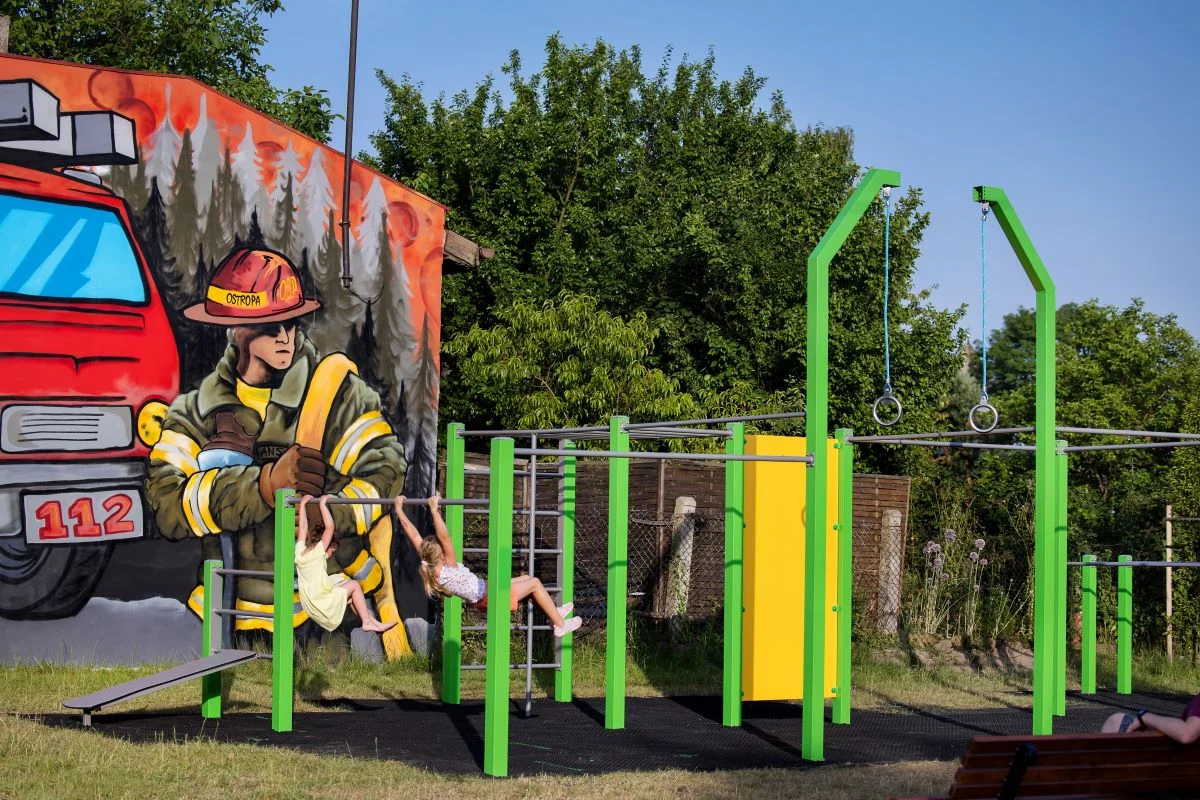 W ubiegłym roku na terenie sąsiadującym z jednostką Ochotniczej Straży Pożarnej Ostropa nasadzono kilkanaście drzew i kilkaset krzewów. Niedawno pojawiły się tam również urządzenia do ćwiczeń na powietrzu, stojaki na rowery oraz prawdziwy hit – zabawowy wóz strażacki.