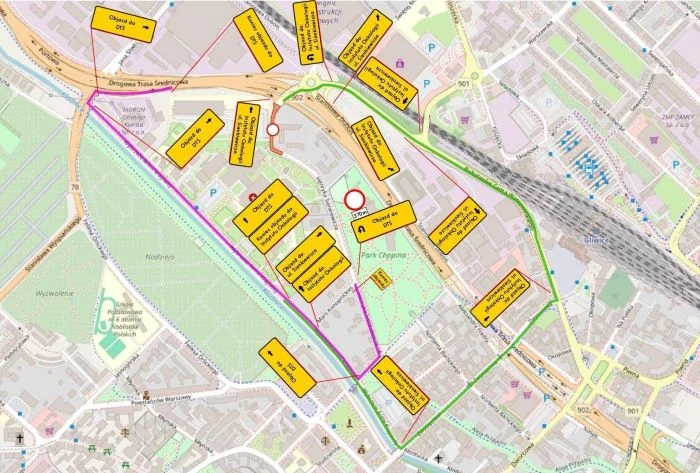 Jak informuje Zarząd Dróg Miejskich w Gliwicach, część trasy dotychczasowego objazdu pozostanie bez zmian. Kierowcy chcący dojechać do Narodowego Instytutu Onkologii od strony DTŚ będą musieli zjechać – jak to już było – do ulicy Bohaterów Getta Warszawskiego, następnie skręcić w ul. Zwycięstwa, potem w ul. Wybrzeże Armii Krajowej aż do zabudowań Instytutu Onkologii.