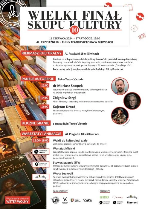 Stowarzyszenie „Cała Naprzód” zaprasza na Wielki Finał 10. edycji Skupu Kultury, największego na Śląsku kiermaszu kulturalnego o charakterze charytatywnym.