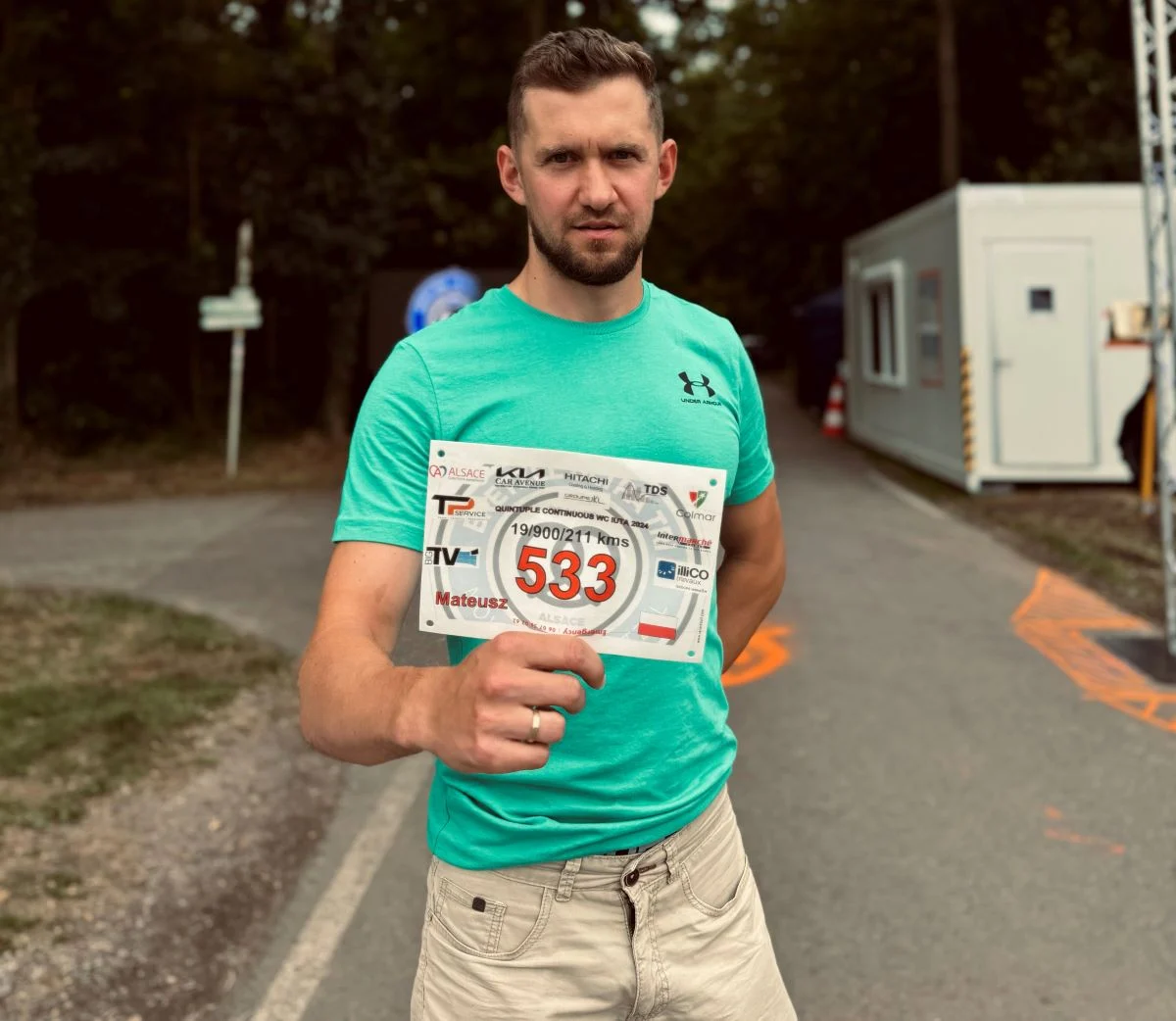 Gliwiczanin, który w ubiegłym roku ustanowił nowy rekord świata na dystansie trzykrotnego Iron Mana, tym razem pokonał 19 km płynąc, 900 km jadąc na rowerze oraz 211 km biegnąc. W zawodach, które rozpoczęły się 24 czerwca, wystartowało około 50 zawodników i zawodniczek z całego świata.