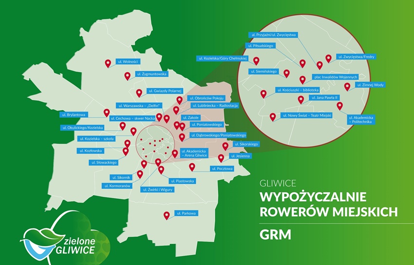 Obecnie do dyspozycji gliwiczan jest już 35 stacji z 350 rowerami różnego typu (295 standardowych rowerów miejskich wyposażonych w koszyki, 2 tandemy i 3 rowery familijne cargo). Stacje rozmieszczone są w różnych częściach miasta, co umożliwia szybkie i tanie przemieszczanie się – pierwszy kwadrans na gliwickim rowerze jest bezpłatny. Kolejne minuty to koszt 5 groszy.