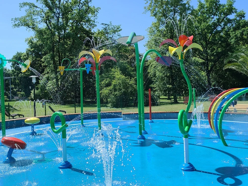 Wodny plac zabaw został wyposażony w urządzenia umilające czas spędzany w wodzie – tryskający wodą tunel z kręgów, dwie palmy, wiaderka, parasol, armatkę, dysze i kolorowe prysznice. Do atrakcji można wejść przez oznakowane i wyłożone płytami antypoślizgowymi brodziki, przystosowane do potrzeb osób poruszających się na wózkach. Woda na placu zabaw będzie filtrowana i dezynfekowana, a jej temperatura będzie wynosić 26 stopni Celsjusza.