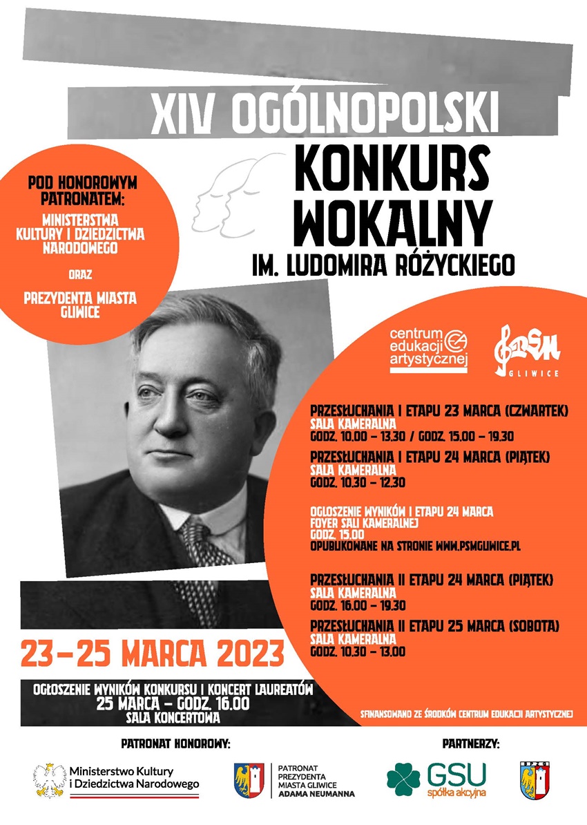 Zbliża się kolejna, czternasta już odsłona Ogólnopolskiego Konkursu Wokalnego im. Ludomira Różyckiego. Wydarzenie odbędzie się w dniach 23–25 marca. Tym razem Państwowa Szkoła Muzyczna w Gliwicach zaprasza uzdolnionych wokalistów i publiczność do swojej nowej siedziby.