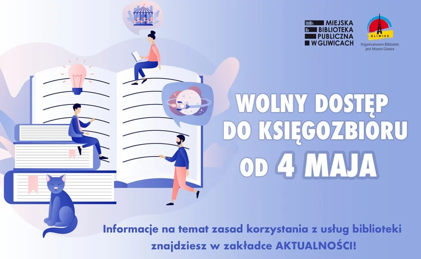 Od wtorku, 4 maja 2021 r. Miejska Biblioteka Publiczna w Gliwicach otwiera wolny dostęp do zbiorów we wszystkich placówkach.